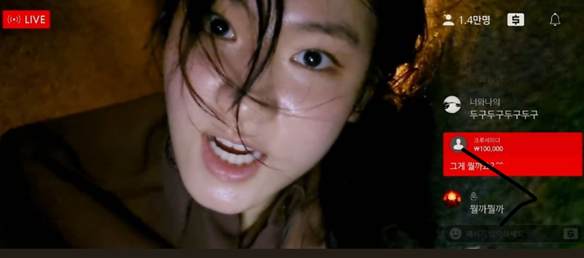 한유나(주인공): 위험한 콘텐츠를 통해 인기를 얻으려는 유튜버. 납치된 상황에서도 방송을 이어가며 생존을 위해 애쓰는 모습이 인상적이에요.