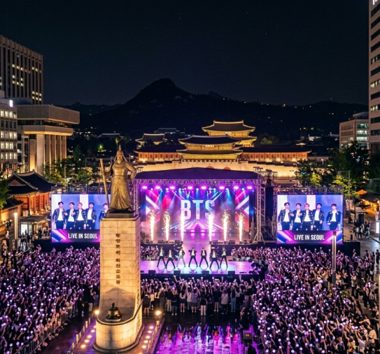 이번 공연은 멤버 전원의 군 복무 완료 후 첫 공식 무대로, 약 10만 명 이상의 인파가 운집했습니다. 당국은 안전사고 예방을 위해 세종대로 일대를 약 33시간 동안 전면 폐쇄했습니다. 이 과정에서 인근 지하철역의 무정차 통과와 버스 노선 우회로 인해 주말 서울 도심 교통은 극심한 혼잡을 겪었습니다.
