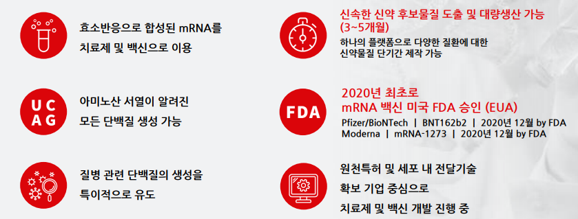 mRNA 투여를 통해 모든 단백질 및 항원(백신 생성 가능)