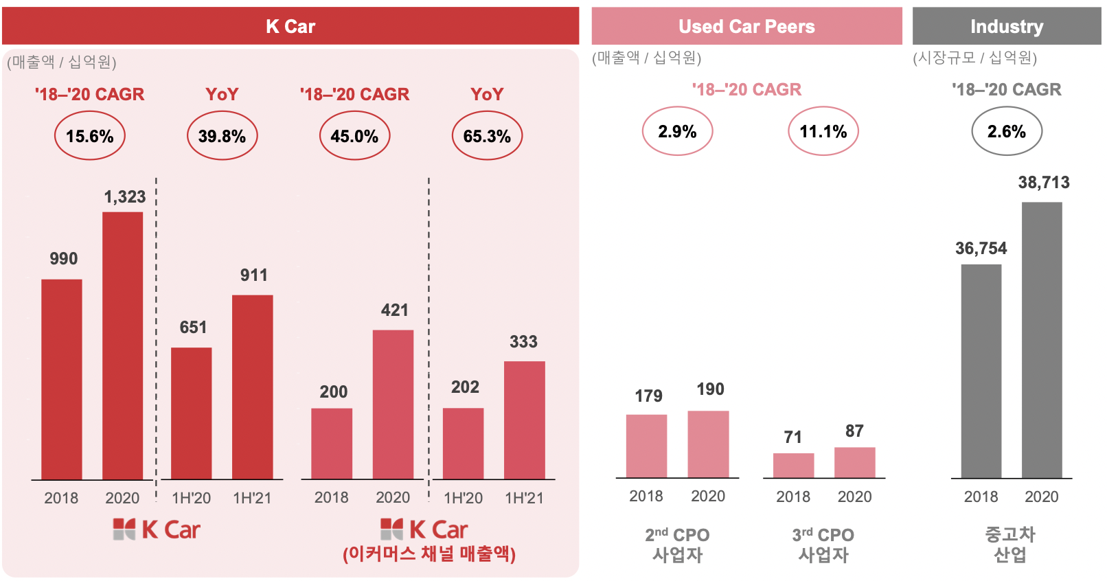 K Car의 매출 성장률은 중고차 산업 전체 및 주요 경쟁업체의 매출 성장률을 큰 폭으로 상회하고 있다.