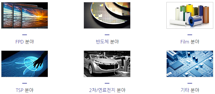 LCD, LTPS, OLED 등 각종 기판 유리의 표면 세정 및 접합 전 공정 등에 적용
