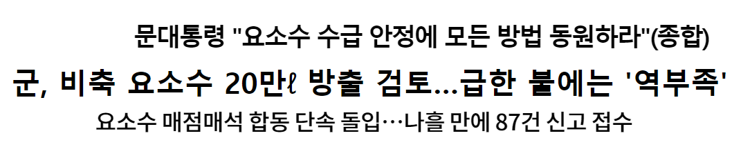 이 요소를 우리나라는 중국에서 대부분 수입해서 사용하고 있는데 최근 요소를 뽑아내는 석탄이 호주와 무역분쟁으로 부족해지자 중국 정부가 수출 제한을 걸었다.