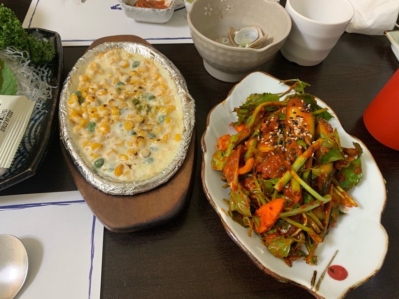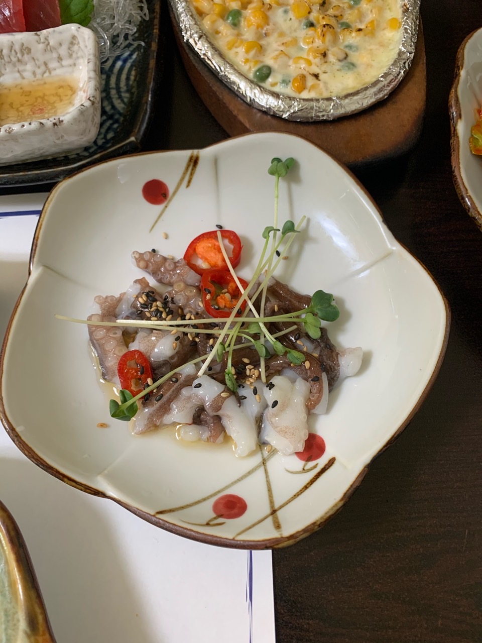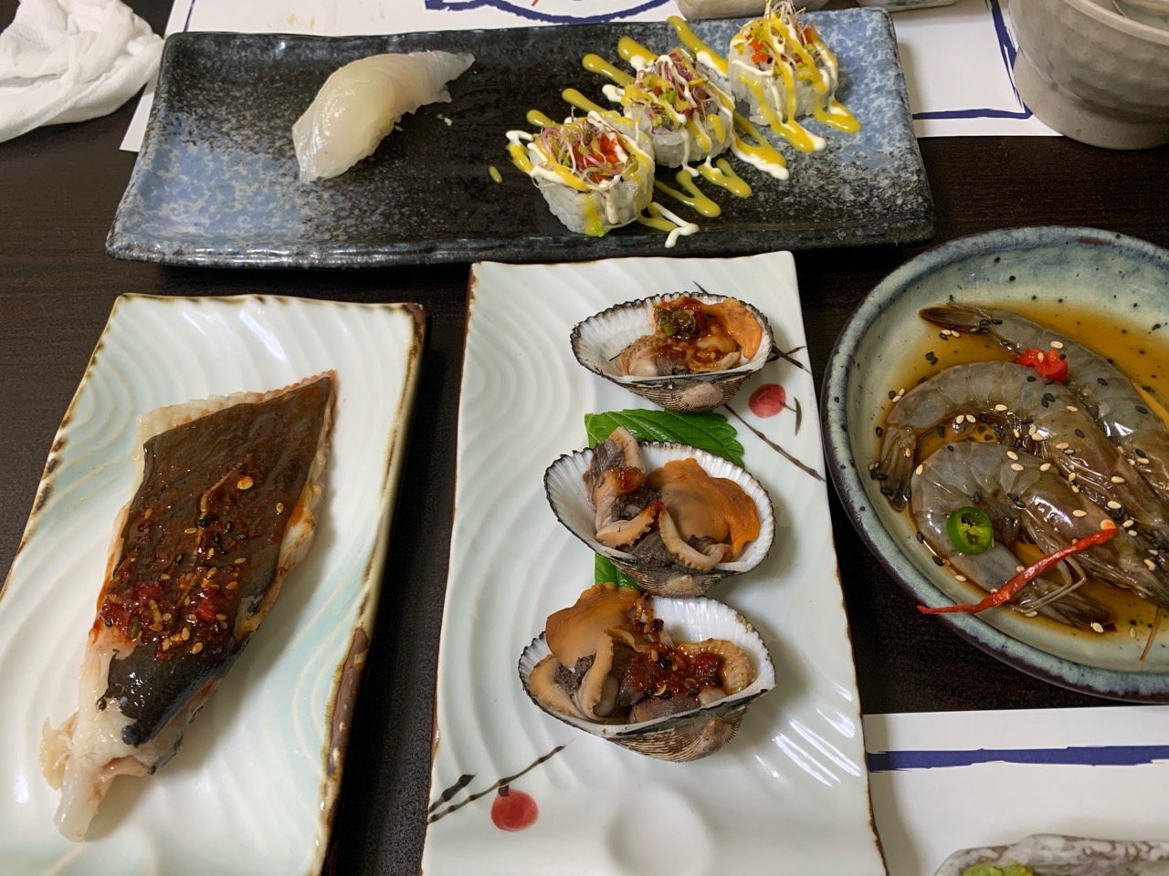 세명이서 B코스(45,000원) 3인을 시켰습니다. 기본적으로 나오는 반찬이 옥수수콘, 초밥, 롤, 가오리찜, 전어무침, 참치, 새우, 꼬막, 산낙지 등이 나왔어요 ~