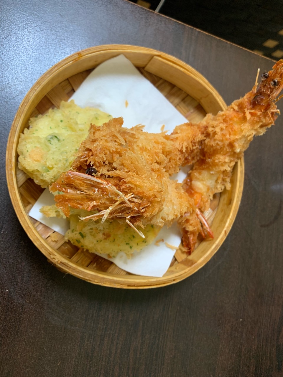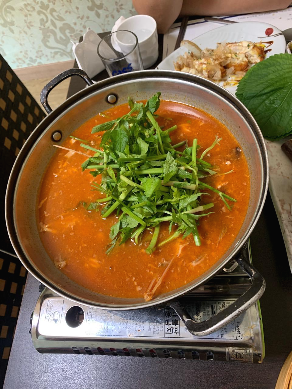 마지막으로 매운탕과 새우튀김, 고구마튀김까지 나왔어요.