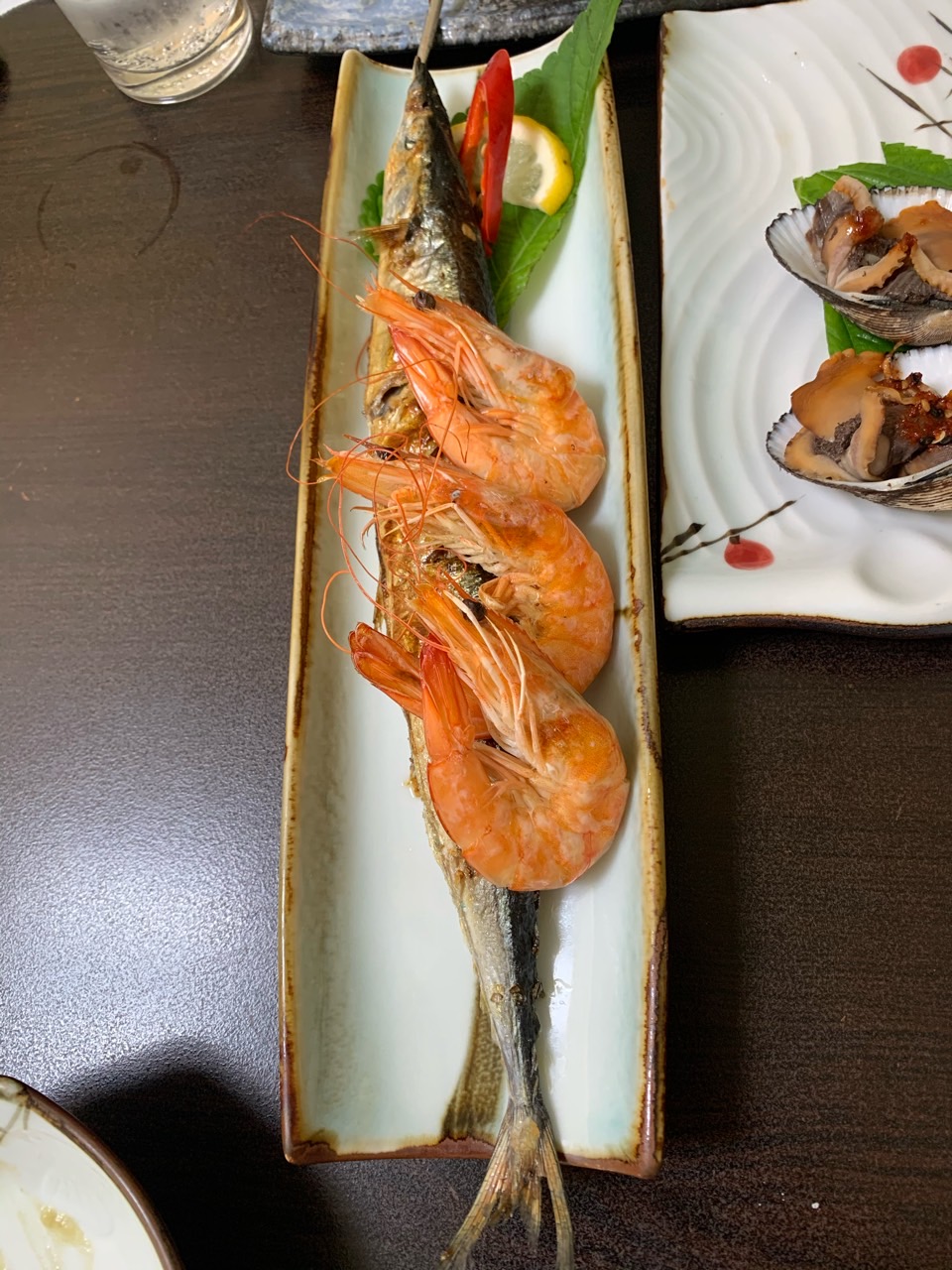 다 먹을 때 쯤 메인 메뉴인 해산물과 회가 나왔어요.