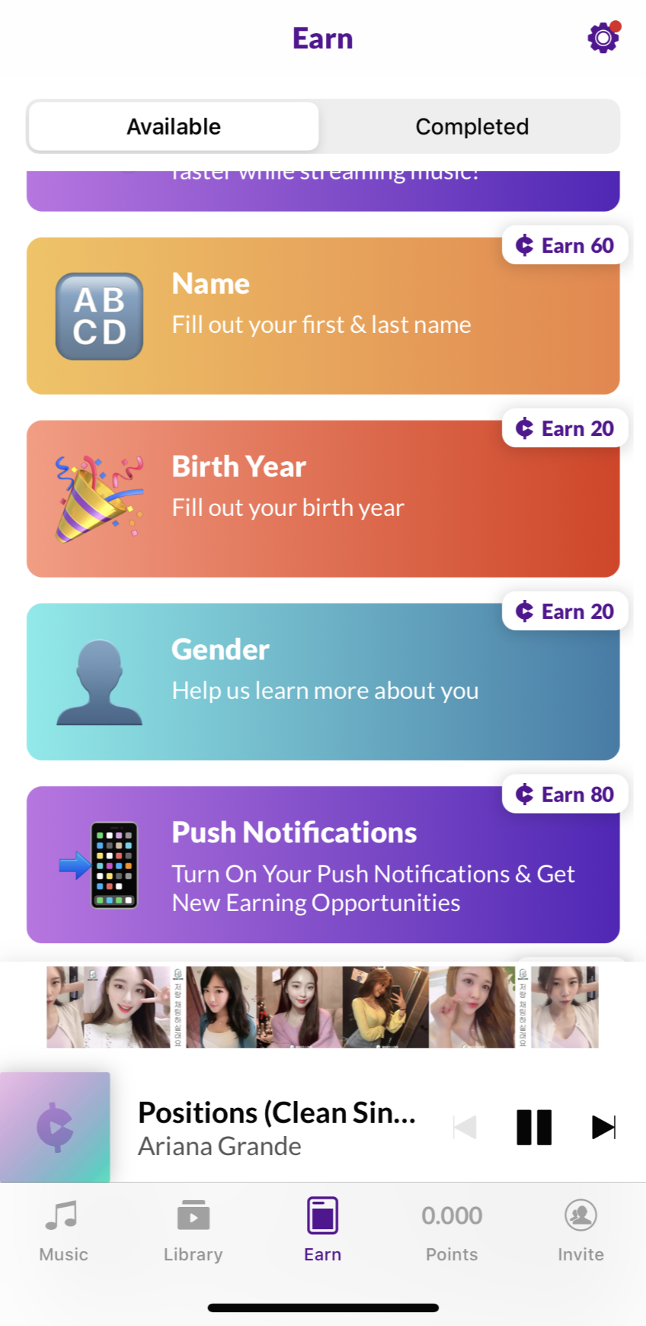 Current music은 평소 음악을 많이 청취하시는 분들이 음악도 듣고 포인트도 얻을 수 있는 1석 2조 앱인거 같아요