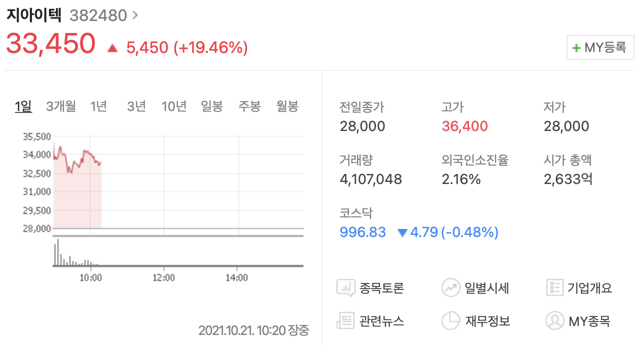 지아이텍이 마침내 10월 21일 상장하였다!