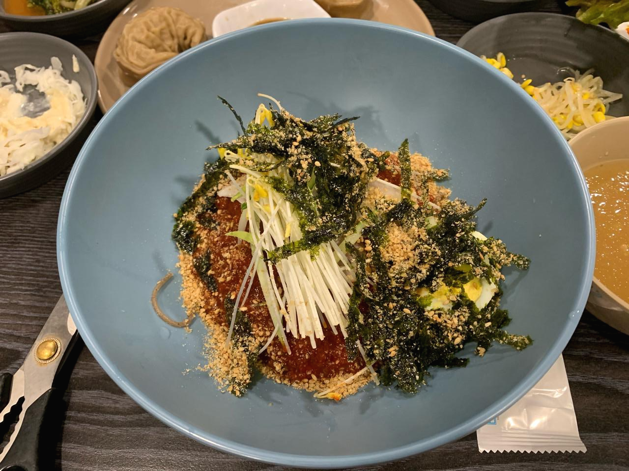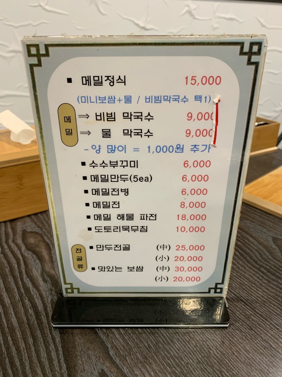 다른 블로그 찾아보니까 여긴 비빔막국수가 맛있다고 하여 메밀정식(비빔막국수)에 메밀만두를 시켰어요 ~