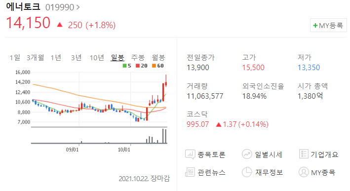 에너토크는 무슨 이슈로 최근 급등세를 이어나가고 있는 중일까?