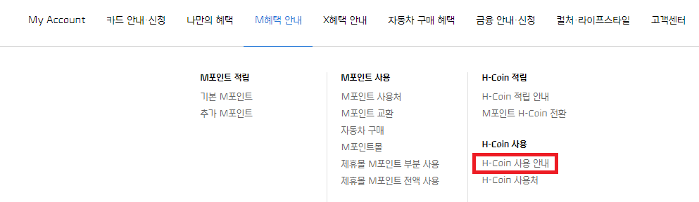 4. M혜택 안내 → H-Coin 사용 안내