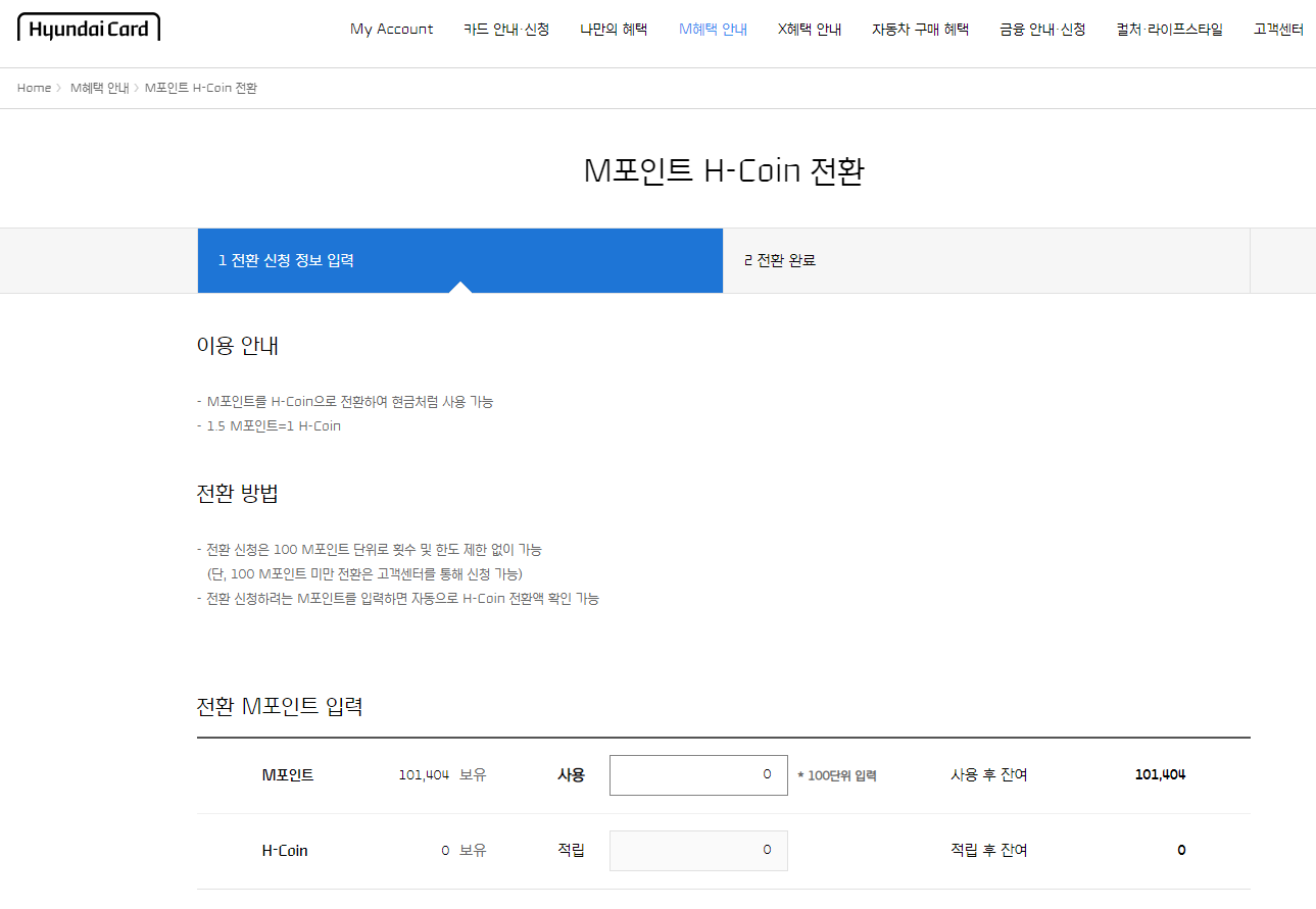 2. M혜택 안내 → M포인트 H-Coin 전환
