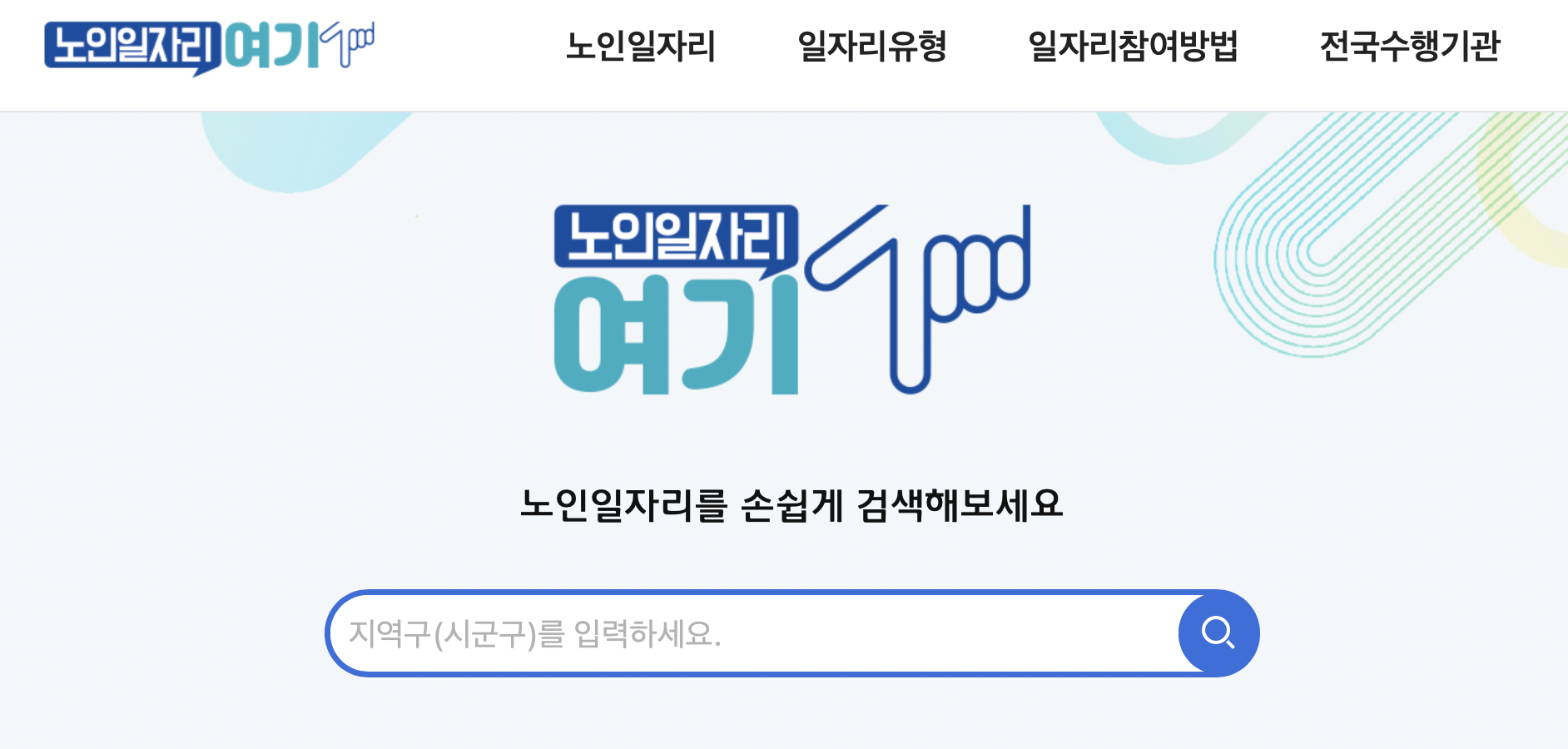 '노인일자리 여기'에 접속하여 검색창에 거주지 지역명을 검색하면 거주지 내 위치한 수행기관에서 운영 중인 일자리에 온라인 참여 신청을 할 수 있습니다.