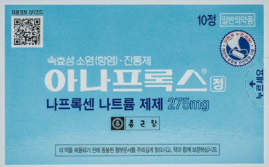 종근당에서 나온 아나프록스 정입니다. 가격도 2,000원으로 엄청 저렴해요 ㅎㅎ