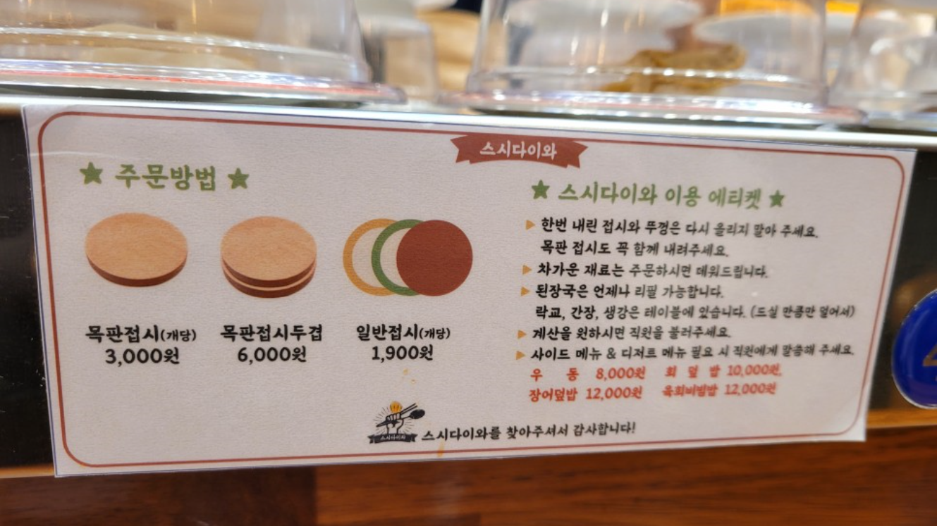 간혹 목판접시에 올려져 있는 스시들이 있었는데 그건 개당 3,000원 이고