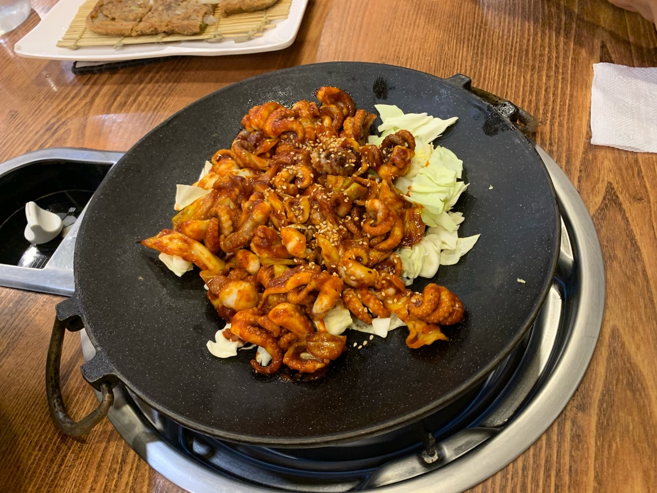 메인이 나왔네요 ㅎ 철판쭈구미를 시켜서 철판에 올려져서 나왔네요.